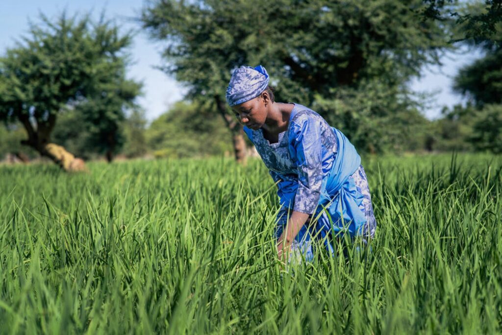 A farm worker weeds a rice field in northern Nigeria’s Yobe State in 2023.