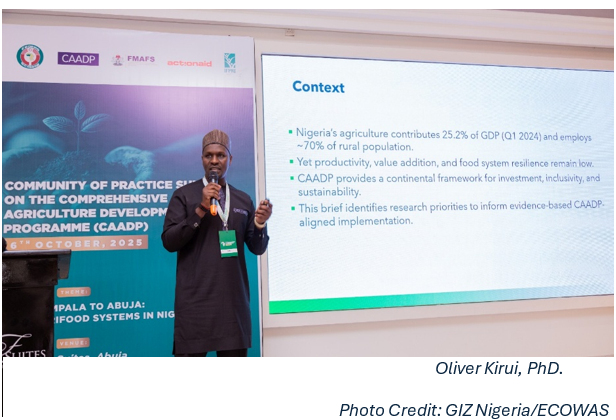 This remains one of the highlights of the one-day Community of Practice Summit on the Comprehensive Africa Agriculture Development Programme (CAADP) organized by FMAFS in collaboration with IFPRI, GIZ Nigeria, ECOWAS, and ActionAid Nigeria in Abuja on Monday, October 6, 2025. The event, which featured technical presentations, brought together Commissioners of Agriculture, Livestock, Fisheries, and Rural Development from the 36 states of the federation and the Federal Capital Territory (FCT), research institutions, development practitioners, CSOs, and farmer groups.
